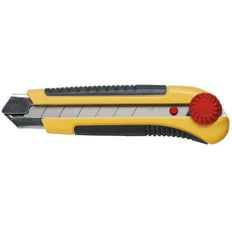 Das Cuttermesser eignet sich für den Gebrauch mit 25 mm Klingen. Praktische Handhabung aufgrund der Schraubensicherung.
