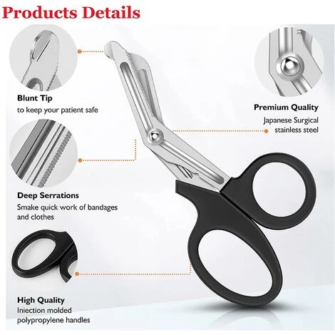 Hochwertiges Trauma-Scheren-Set. Preisgünstiges professionelles 7,5-Zoll-medizinisches Scheren-3er-Set. Titanbeschichtete Edelstahlklingen in Pflegequalität für scharfes und sauberes Schneiden. Tiefgefräste Verzahnung für verbesserte Schnittleistung. Der ergonomisch gestaltete, langlebige Griff kann mit der linken oder rechten Hand verwendet werden.Professionelle Erste-Hilfe-Schere/Gaze-Schere: Speziell entwickelt für Ärzte, Krankenschwestern, Sanitäter, EMT und EMS. Besonders geeignet für Ersthelfer und Krankenschwestern/Pflegepersonal in der Notaufnahme.Sicher und einfach zu bedienen: Die stumpfe und runde Klingenspitze verhindert sekundäre Kratzer/Schnitte. Es ist für Ihre Wildnis-Erste-Hilfe-Ausrüstung vorbereitet. Die passende Größe ist praktisch, damit Sie sie jeden Tag tragen können.Erstaunlicher Schneideeffekt: Geeignet für Gaze, saugfähige Pads, medizinisches Klebeband, Kleidung, Bandagen und andere Materialien. Es kann auch chirurgische Bandagen, Plastiktüten, Infusionsschläuche/-beutel und Pappe schneiden.Rkqoa Mehrzweckschere: Kann als Traumaschere, medizinische Schere, Verbandschere, chirurgische Schere, Pflegeschere, Pflegeschere, Pflegezubehör, Sicherheitsschere, Krankenhausschere, Verbandschere für Krankenschwestern, medizinische Schere, Emt-Schere, medizinische Schere verwendet werden für Krankenschwestern, Sportbandschere etc.Es ist eine hochwertige medizinische Schere mit einjähriger Garantie. Hergestellt vom erstklassigen Hersteller von Traumascheren, ist es eine sehr kostengünstige Premium-Chirurgieschere. Sie können es mit Vertrauen kaufen.