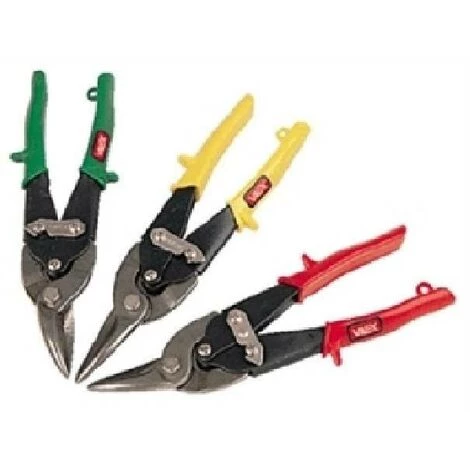 Stahlklingen – gerade, links und rechts geschnitten – gummierte Griffe – Rückholfeder und Fangvorrichtung länge mm 240