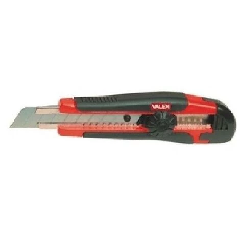 Matalische Klingenführung – Klingenblockierrad – Rutschfester Gummigriff – Tank mit 2 Ersatzklingen klingenbreite mm 18