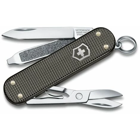 - Taschenmesser mit geprägten und eloxierten Aluminium-Schalen und 5 Funktionen, hergestellt in der Schweiz