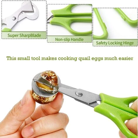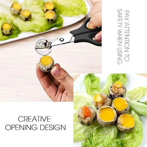 - Wachtelschere Eigenschaften: Hygienische, Sehr praktisch, um Wachteleier zu öffnen, ohne diese zu zerbrechen, Eierschere ist sicher und spart zeit, hinterlässt keine schalenstücke und eignet sich perfekt für pochierte, gebratene und durcheinandergemischte, winzige eier, Es ist ein guter Helfer zum Kochen.