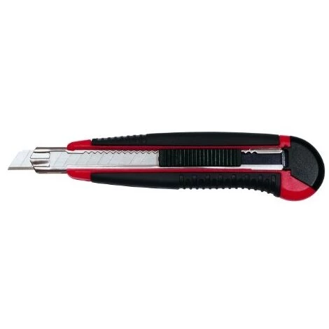 WEDO AUTO-LOAD Profi-Cutter, 9 mm, mit automatischem Klingentausch aus integriertem Magazin. Robustes Abbrechmesser aus ABS-Kunststoff mit komfortablem, rutschsicher gummiertem Griff. Klingenführung aus Metall. Mit Rastervorschub und Auto-Stop. Automatischer Klingentausch aus dem integrierten Klingenmagazin mit 5 Klingen. Dazu wird der Schieber ganz nach vorne geschoben und die verbrauchte Klinge schräg nach oben entnommen. Durch das erneute Zurück- und Vorschieben ist die neue Klinge automatisch geladen. Lieferung auf Blisterkarte mit Abbrechhilfe und fünf Klingen. Maße: ca. 14,0 x 1,5 x 3,0 cm, Gewicht: 54 g, Farbe: rot/schwarz