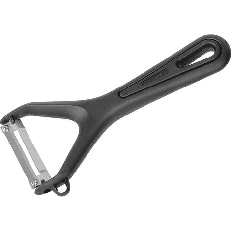 Der Gemüse- und Spargel-Querschäler „Gentle“ kann mühelos Gemüse und Kartoffeln im Handumdrehen schälen. Am Kunststoffgriff ist ein Fingerschutz integriert, womit ein Wegrutschen verhindert wird. Die Klinge ist so eingebaut, dass sie nur leicht über die Kartoffeln oder das Gemüse gestreift werden muss. Je mehr Druck ausgeübt wird, desto mehr Schale wird entfernt. Zudem gibt es einen Ausstecher für Schadstellen.