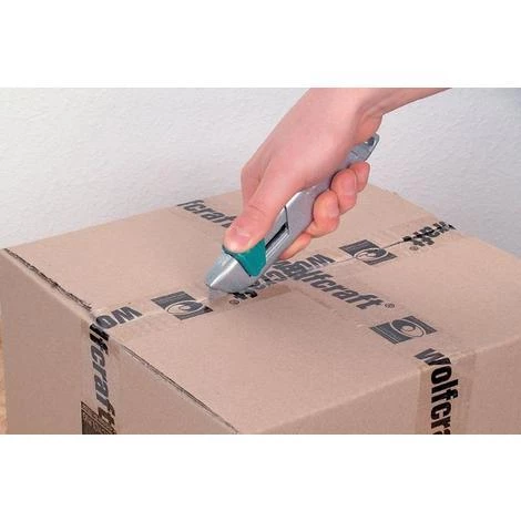 1 Stk. wolfcraft Sicherheitsmesser aus Metall mit einziehbarer Klinge die Klinge fährt automatisch ein, sobald der Sicherheitsknopf losgelassen wird