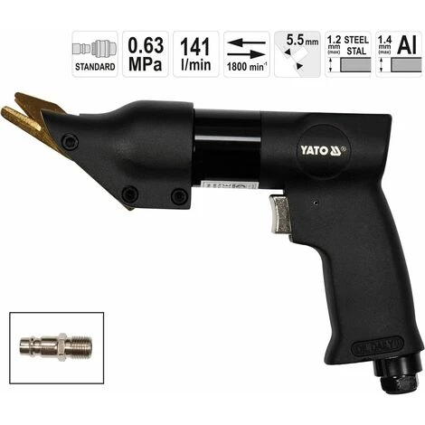 - YATO® Pneumatische Druckluftschere zum Schneiden von Stahlblechen und Aluminium für den Einsatz in Werkstätten und Industrie bei nur geringem Luftverbrauch von 141l / min.